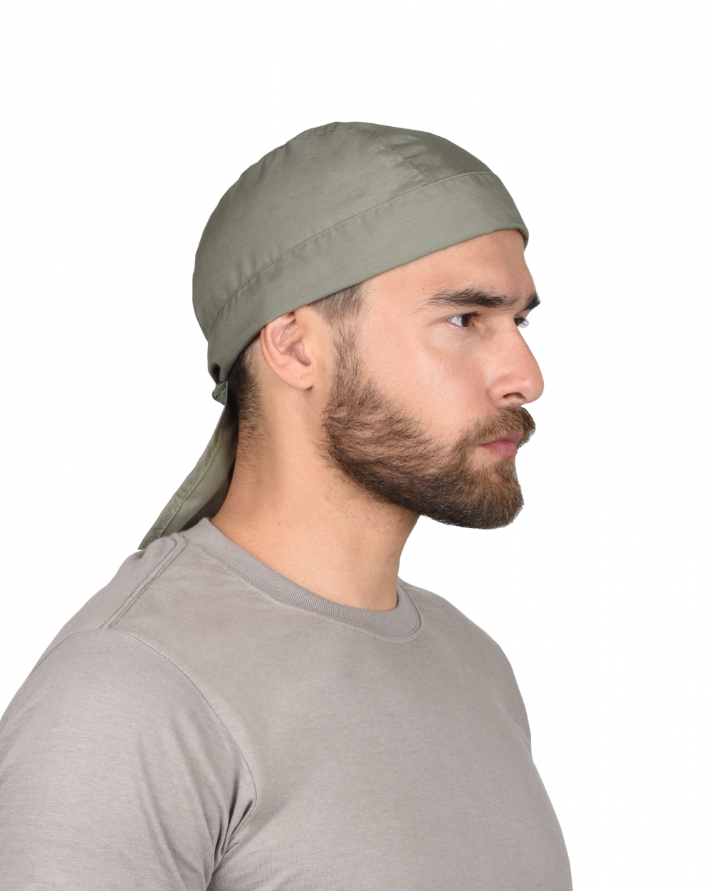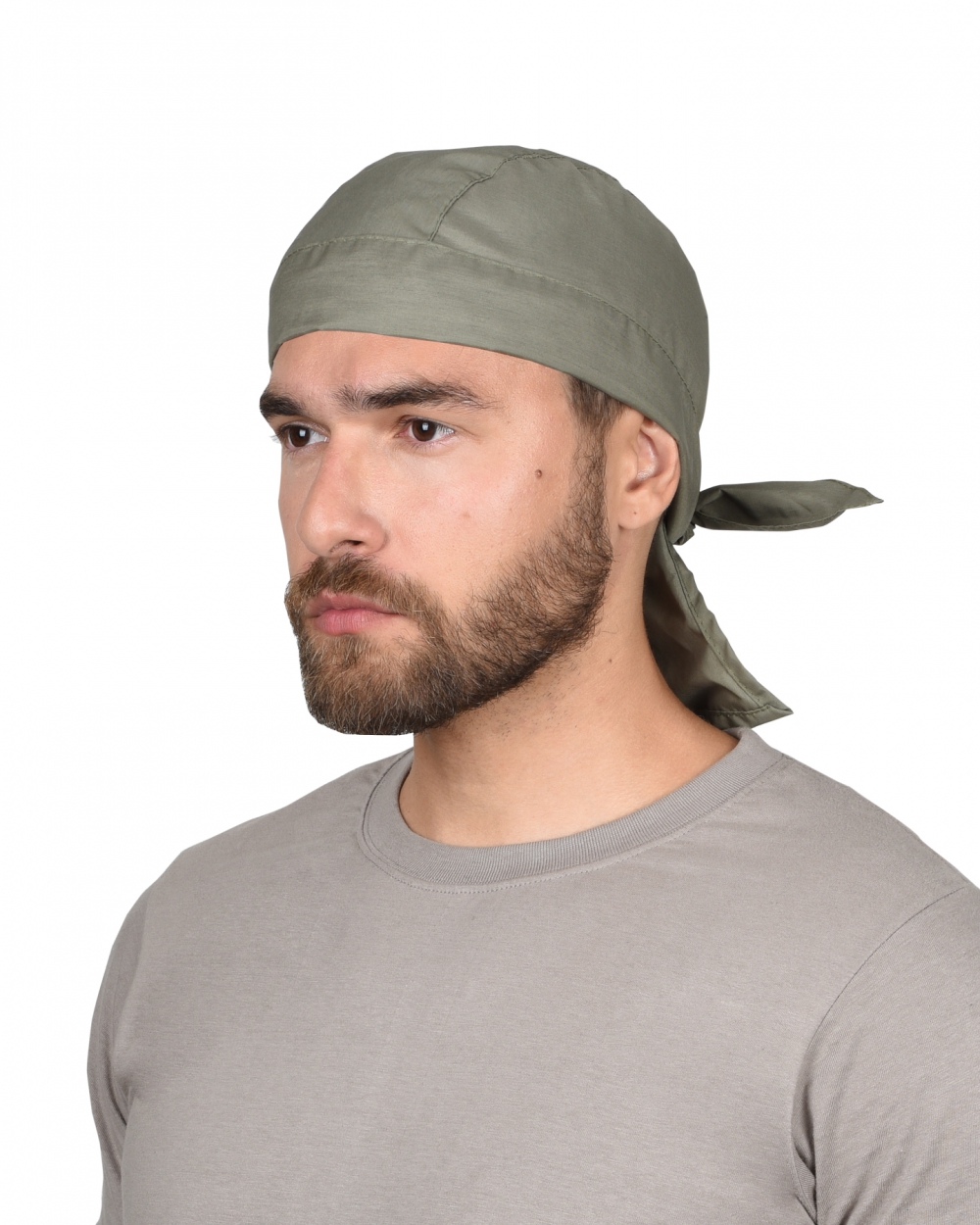 Бандана состоит из двух боковых деталей, средней детали удлиненной в затылочной части, с околышем переходящим в затылочной части в завязки, для регулировки по объёму головы. Срезы затылочной части средней детали обработаны швом в подгибку с закрытым срезом.
