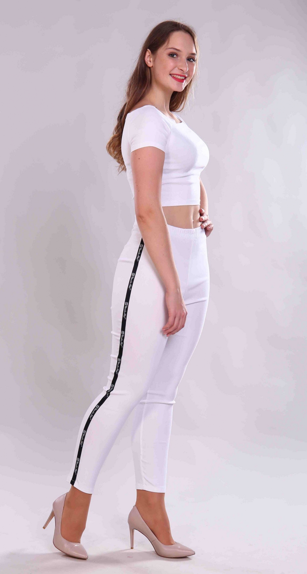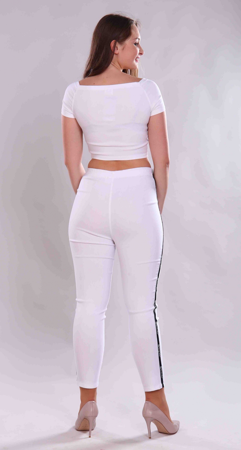 Брюки с лампасами М-305, тк.Элит/стрейч, цв.белый/чёрн.