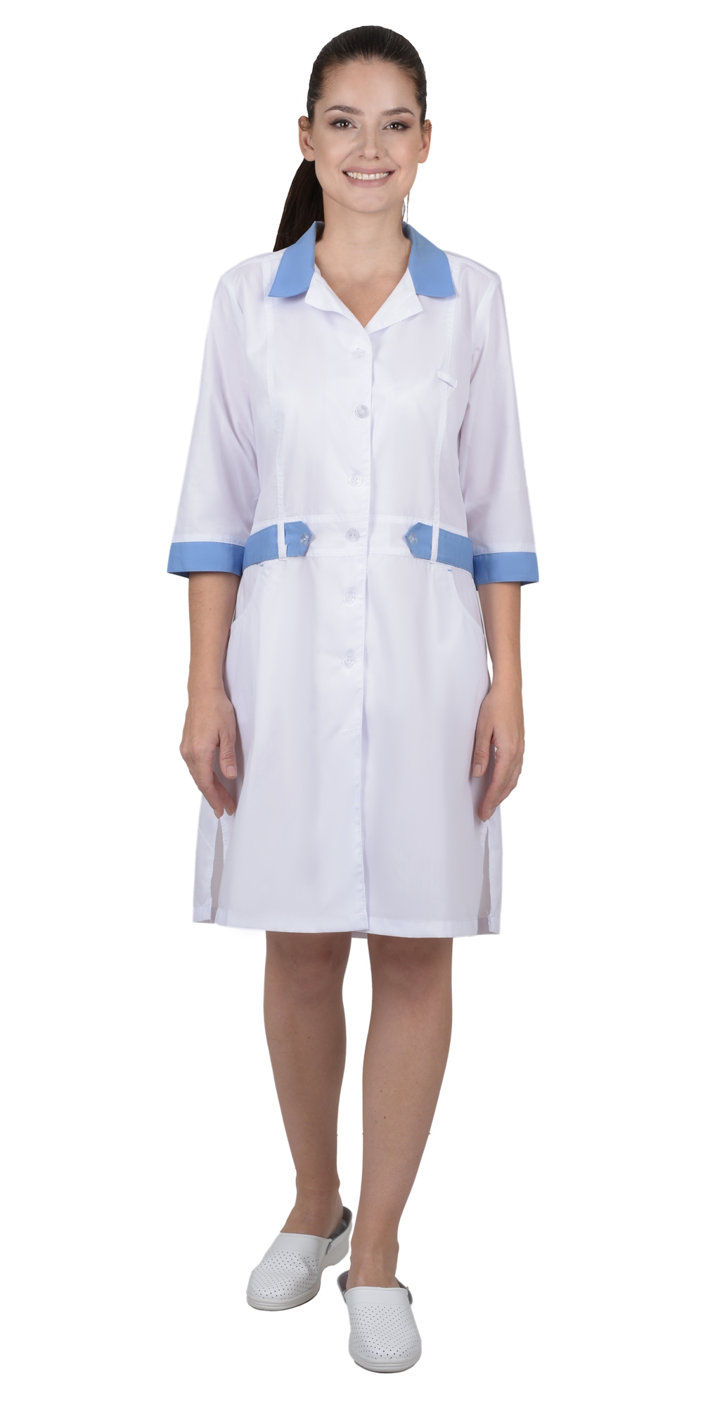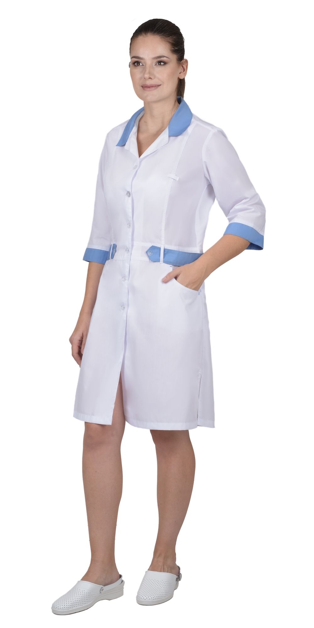 Халат ЕВА, тк.смесовая, цв.белый/голубой