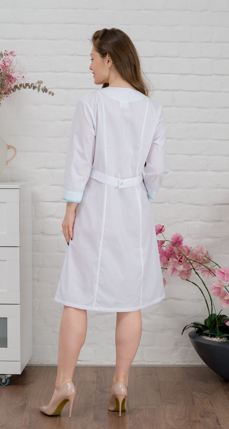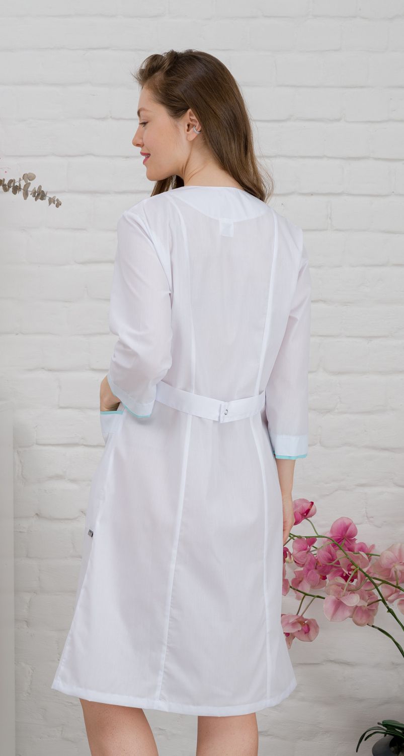 Халат ИРИДА (М-038) на молнии, тк.тиси, цв. белый с бирюзовым