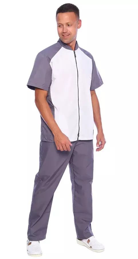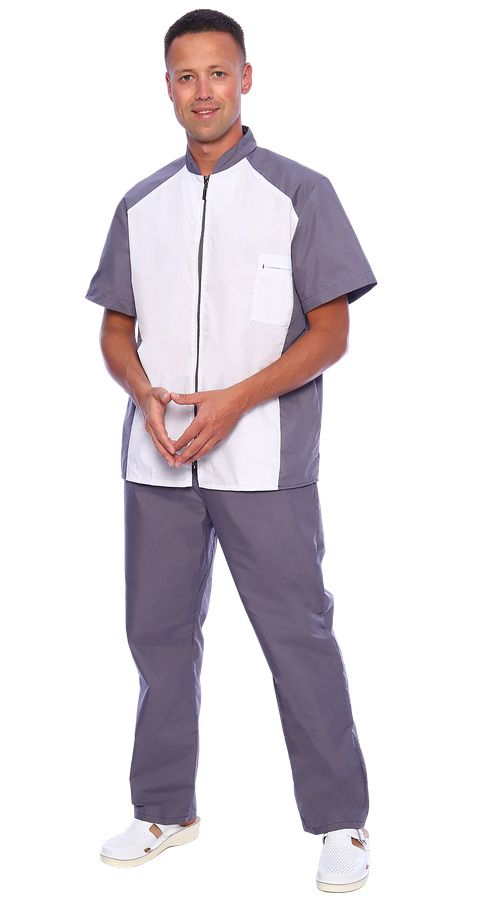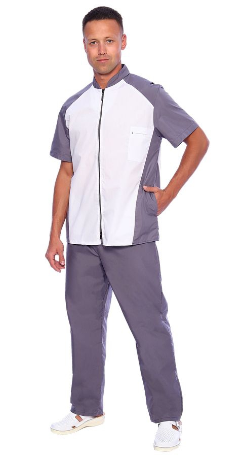 Костюм мед. мужской (М-02-90), тк.тиси, серый/бел.