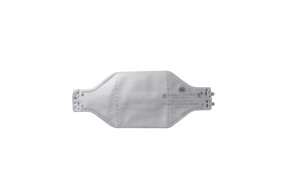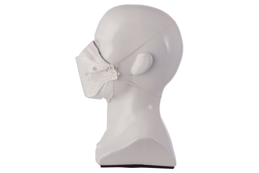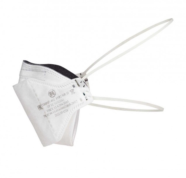 гибкой алюминиевой пластиной, легко принимающей форму переносицы, и саморегулируемыми эластичными лентами оголовья, позволяющими надежно закрепить респиратор на лице. Респираторы имеют универсальный размер, подходят для любого типа лица.