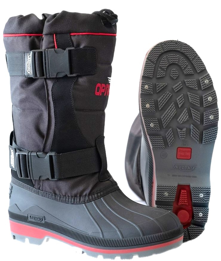 Бахилы выполнены в комбинации: нижняя часть - галоша из материала ТЭП, надставка из водоотталкивающего материала на подкладке (поролон, спанбонд). Шнуровка плотно фиксирует голенище по ноге. Подошва с глубоким протектором прошипована стальными шипами. Метод крепления борто-прошивной. Комплектуется вкладным чулком из дублированного материала - фольгированного нетканого полотна и искусственного меха с добавлением натуральных волокон.
