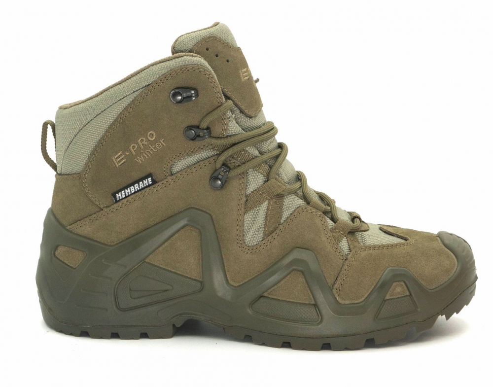 Зимние ботинки E-PRO - это многофункциональная обувь для работы, активного отдыха, треккинга и туризма. Трекинговая обувь E-PRO – это современная линия профессиональной тактической обуви. Изготовлена из высококачественной микрофибры толщиной 2 мм и прочного материала Cordura. Данная модель имеет мембрану, которая обеспечивает водонепроницаемость и отводит излишки влаги с поверхности кожи, а благодаря применению инновационного утеплителя Тинсулейт (Thinsulate) вам будет комфортно даже зимой. Защитный рант обеспечивает необходимую стабилизацию ноги, распределение жесткости по всей конструкции ботинка, а также адаптацию обуви в соответствии с анатомией стопы. Спереди подошва заходит на носок, обеспечивая его защиту от повреждений. Внешняя часть подошвы с протектором сделана из натуральной резины, что значительно улучшает сцепление на скользкой поверхности. Благодаря шнуровке их удобно надевать, а высота берца хорошо удерживает голеностоп, защищая его от травм. За эффективную амортизацию отвечает трехслойная анатомическая стелька. Непромокаемые теплые ботинки обеспечивают комфорт в движении, обладают хорошей паропроницаемостью за счет мембраны, защищены от влаги, обеспечивают сухость вашим ногам, защищают стопу от ударов и вывихов. Трехслойная анатомическая стелька отвечает за эффективную амортизацию и улучшает отвод влаги внутри ботинка, а также создает дополнительный комфорт при движении.