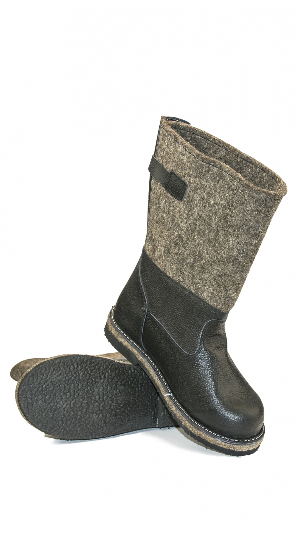 Сапоги изготавливаются из натуральных материалов: кожи, войлока обувного чисто шерстяного, которые эффективно удерживают тепло при температуре от -20 до-45С и в то же время обладают дышащими свойствами.