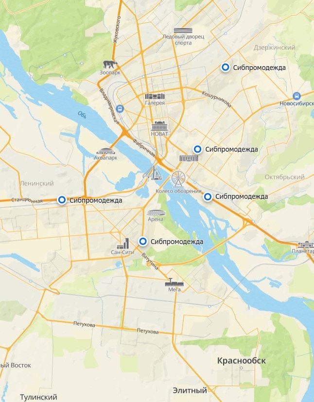 Расположение по Новосибирску